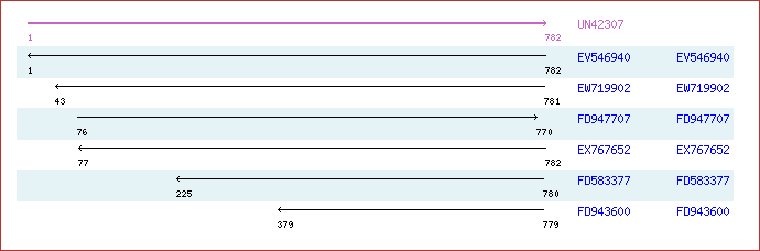 | B9DHI9 AT1G09640 protein | 1024 | 2e-109 |  | B7SDI2 Elongation factor 1-gamma | 899 | 6e-095 |  | B8AE83 Putative uncharacterized protein | 896 | 1e-094 |  | Q0E2Q7 Os02g0220500 protein | 896 | 1e-094 |  | B8AE84 Putative uncharacterized protein | 892 | 4e-094 |